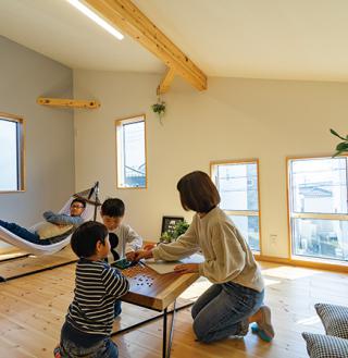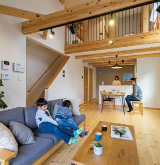 平屋でも2階建てでもない、ちょうどいい広さ。どこにいても家族の気配が感じられる『LOAFER』は自然の光が差し込み、すがすがしい風が薫るロフトのある住まい。冬は家の中心にある薪ストーブを囲んで暖まり、夏はデッキに降りて仲間とビールで乾杯。見上げた夜空にはきっと満点の星が広がっているはず。平屋に入りきらないくらいの「+α」な喜びが、家に、暮らしにたくさん溢れている。