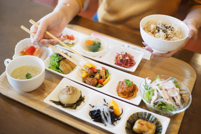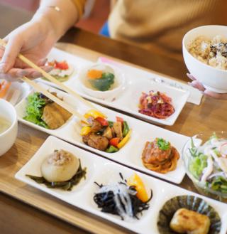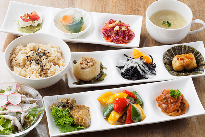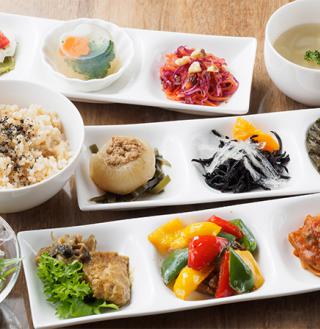 J R野洲駅より徒歩2分、玄米菜食レストラン『キッチンピュア』。安心安全の地産地消食材に、天然由来成分かつ伝統製法の調味料を使用。食材本来の美味しさを引き立てる調理器具や調理法など細部にまでこだわり、精製された砂糖や動物性食材不使用の身体に優しい料理を味わうことができる。