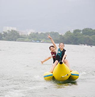 マリンスポーツを中心にアウトドアが一日中楽しめるマリーナ施設。世界で活躍中のライダー達が愛用する、ウェイクサーフボードメーカー「ソウルクラフト」の日本代理店も務めている。取材当日はモアガールもウェイクサーフィンとバナナボートを体験!海のサーフィンとは異なり、ボートで人工的な波を作るため、長く滑り続けられるウェイクサーフィンが大人気。道具利用は料金込みだから気兼ねなく楽しめるのも嬉しい。大会に多数入賞している経験豊富なインストラクターも在籍。昼はレストランや手ぶらOKのBBQでお腹を満たそう。