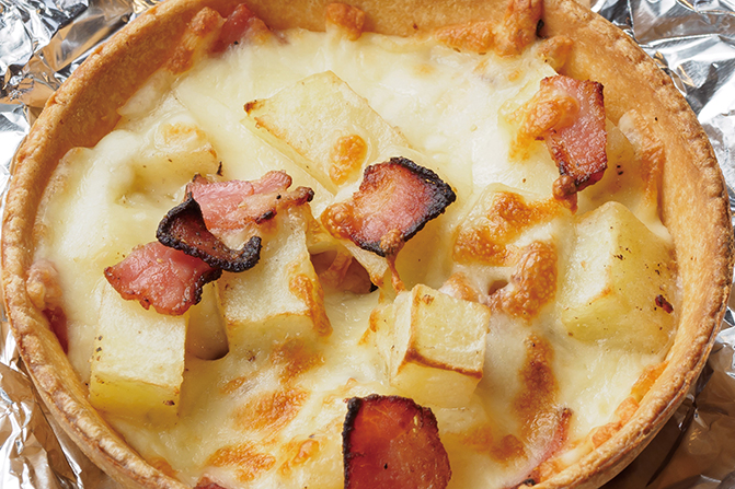 自家製トマトソースが瑞々しいトマトスパは人気の一皿。ポテトベーコンのキッシュはおもてなしやお土産品にも大好評!