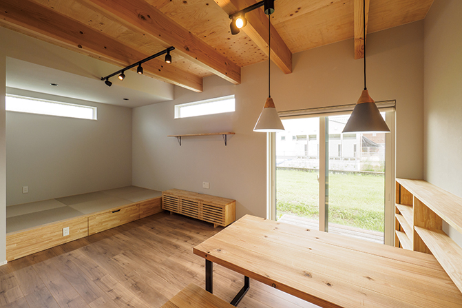 住宅の取得が施主の負担にならない、そんな家づくりを日々研究。未来に笑える家づくりをしたいという想いから「未来笑家」というオリジナルブランドをつくり、特許申請中の新断熱工法で高性能な住宅を比較的低コストで建築。土地と建物合わせ10年間は月5万円で住宅の取得が可能に。年間光熱費も10万円以下と低燃費。なにかと出費が嵩みがちな子育て世代でも十分マイホームが叶えられる。