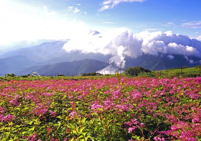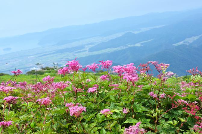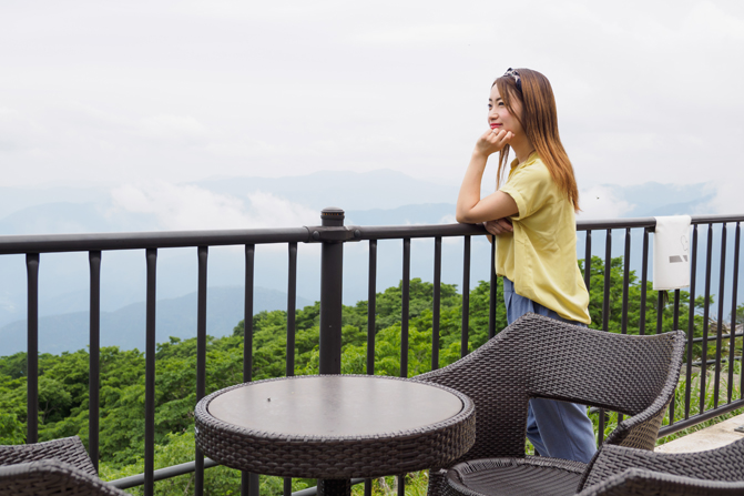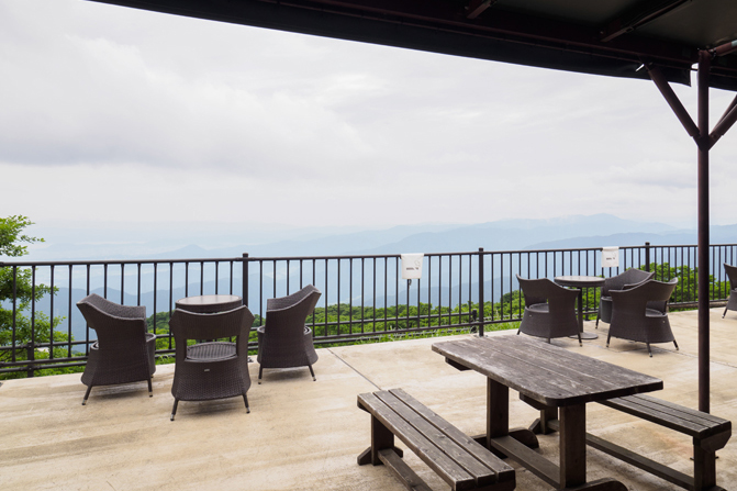 約17kmに渡るドライブの傍ら、雄大な自然を眺めることができる『伊吹山ドライブウェイ』。山頂からの景色は、ほぼ雲と同じ目線。天気が良ければ琵琶湖が一望できる。スカイテラス伊吹山内では地元食材を使った料理、アイスクリームや土産品などを販売。テラス席で絶景を独り占めしながら異世界気分を満喫しよう。