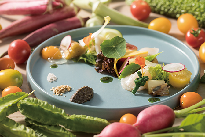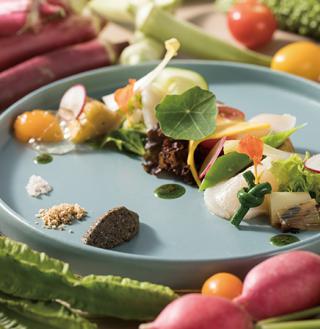 自家栽培・契約農家産の近江野菜やハーブをたっぷり使ったフランス各地の郷土料理を提供。お昼はお得なコース、夜はガッツリメニューやアラカルトでのチョイ飲みを楽しめる。カジュアルな雰囲気なので、カップルや友人同士でいかが?