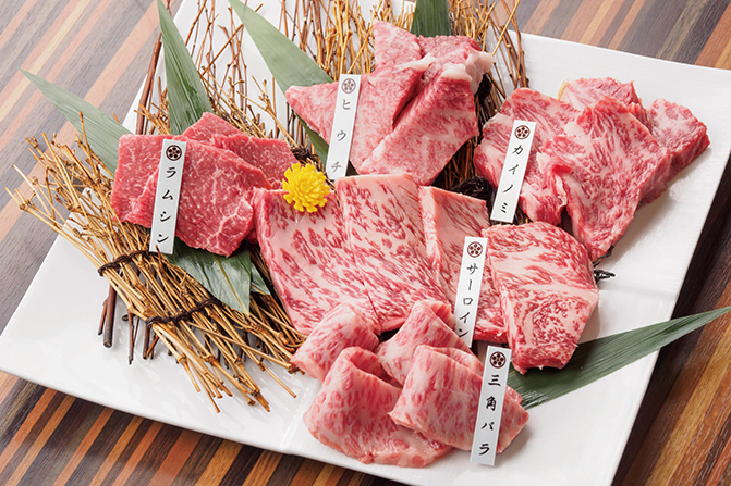 4枚切り20枚6,800円/3枚切り15枚5,100円/2枚切り10枚3,400円/極上近江牛3種盛り12枚4,080円/ホルモン盛り合わせ980円/ファミリーセット4,150円/5種盛りファミリーセット5,450円