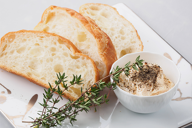 2. 器に盛り付けて完成。パンに塗り、多めの粗挽き胡椒をかけて食べるのがおすすめ!