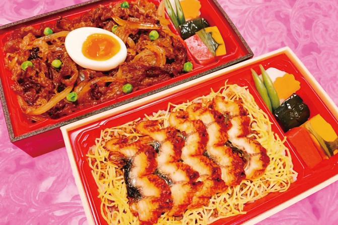 国産牛すき焼き弁当850円(左上)、うな重弁当850円(右下)