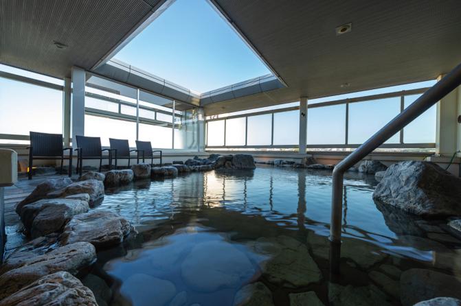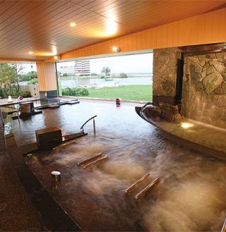 「美人の湯」としても知られ、湧き出し源泉を掛け流しで味わえる県内では珍しい温泉。保湿性や浸透性、保温性に優れ、湯上り後はまるで化粧水を付けたような滑らかな肌触りに。人気の露天風呂では、外気の中でゆっくりと天然の温泉に浸かって、体も心も芯からほぐれて癒されるはず。