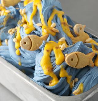 自社の畑で採れた作物や、近隣農家とのコラボ商品を販売する食の生産企業。「滋賀の食材を広めたい」と、ジェラートマエストロの谷口さんが農家と協力して商品を開発。同社の『びわ湖ブルー』は、TVでも紹介された見た目の青さが珍しい濃厚ジェラート。バタフライピーの花びらを使用し、琵琶湖のブルーを表現した。加工品はオンラインでも販売。こだわり食材を自宅でも味わうことができる。