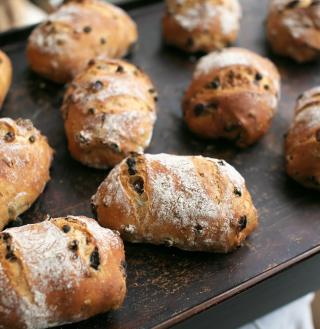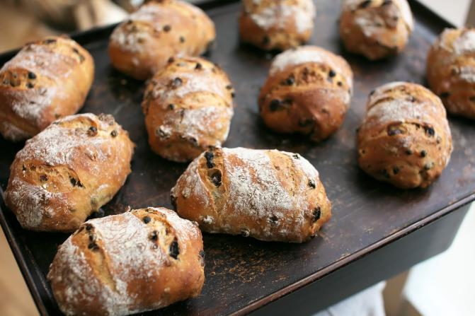 まずは、ライ麦入りの生地に、レーズン・くるみ・カレンズレーズンをたっぷりトッピングした「セーグルレーズン」