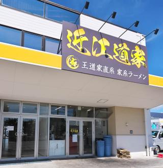 有名家系ラーメン屋「王道家」で修行し受け継いだ、直系の味が堪能できる「近江道家」。豚や鶏のガラを炊き続け継ぎ足し作る、肉の旨みが滲み出たスープは、やみつきになる濃厚な味わい。熟成豚骨×特製醤油スープにモチモチの特注麺が絡む本場の家系ラーメンをぜひ味わってみて。店主が毎朝丹精込めて燻製焼きしているこだわりのチャーシューもオススメ!