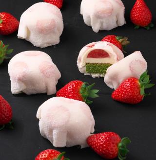 季節の素材を活かしたケーキや焼き菓子が人気な「菓子道 に志むら」から、春の人気商品「苺ミルク大福」が登場。桜あんの生クリームにバニラのババロア、甘酸っぱい苺のジュレ、ほろ苦い抹茶のスポンジを求肥で包んだ、見た目も可愛い大福。1日の販売数に限りがあるから、予約がオススメ!この他、「フレジェピスターシュ」などの絶品いちごスイーツも要チェック。