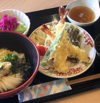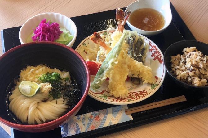 自慢のサクサク天ぷらとうどんが楽しめる、ボリューム満点の「りんかい定食」1,760円