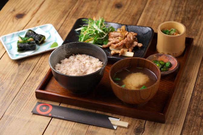 自然薯そのものの味や香りを堪能できるとろろご飯は、オリジナルでブレンドされた雑穀米のプチプチとした食感との組み合わせが◎。日替わりの肉料理や、揚げとろろなどの色々なおかずが一緒に味わえる満足度の高い内容