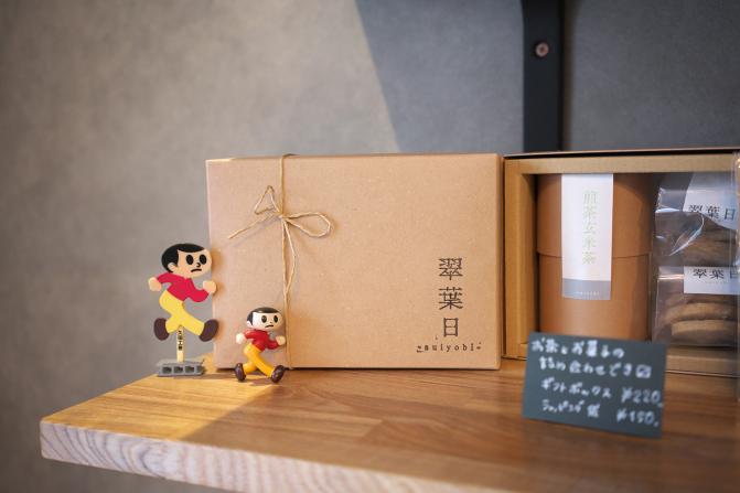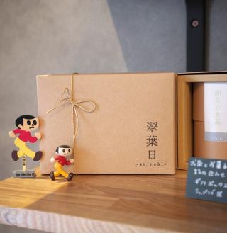 創業100年以上の京都の老舗「六角ちきりや茶舗」がプロデュースするカフェ「翠葉日」。“日常にお茶を取り入れてもらいたい”をコンセプトに、カウンター4席の落ち着いた空間で、お茶に合うおにぎりやお菓子を提供する。滋賀のお茶とお米の魅力が詰まった「翠葉日プレート」や抹茶・ほうじ茶を使ったスイーツなど、メニューも充実。そのほか、気軽に楽しめるテイクアウトメニューも。同店自慢のお茶で淹れた「水出し玉露」や「水出し煎茶」、「抹茶ソイラテ」、おにぎりとお茶がセットになった「ピクニックセット」などが購入可能。