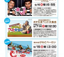 【一茂&良純の自由すぎるTV スペシャル】 9/4水曜よる6:55 【まさはる君が行く!ポチたまペット大重合】 前後編スペシャル 9/7・14土曜ひる12:30 【第29回びわこペーロン】 9/15日曜ひる3:00