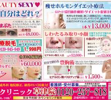 ・切らない二重まぶた ・大好評全身医療脱毛 ・孔雀リフト ・痩せホルモンダイエット療法 ・しわ・たるみ取り・小顔 ・豊胸術 ・プロテーゼ級注入術 ・脂肪ダイエット ・わきが多汗症