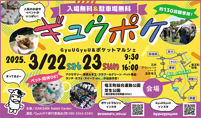 人気のお店やイベントがいっぱい! GyuUGyuU&ポケットマルシェ 入場無料&駐車場無料! 【日時】 2025年 10/4(土)・5(日)…