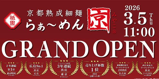 3/5(木)草津駅前にらぁ〜めん京グランドオープン【らぁ〜めん京(みやこ) JR草津駅前店】